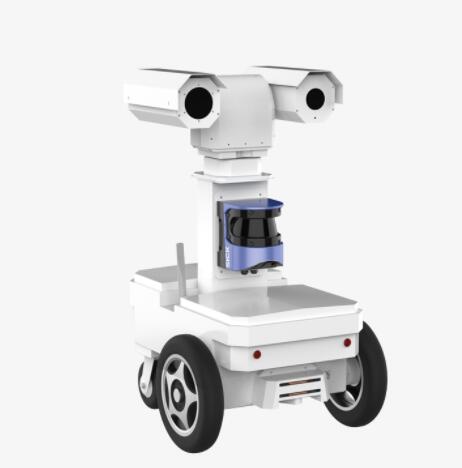 室外巡检机器人配备双激光雷达进行导航定位和路况探测, 辅以微型相机视觉导航,实现无轨化的安全移动